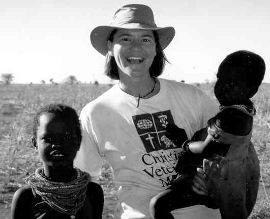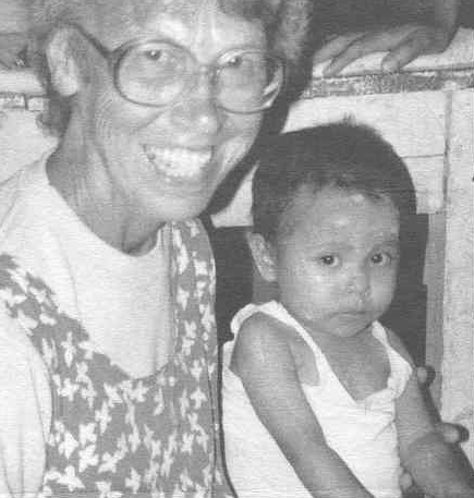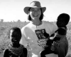 Above, Sr. Niva Langreck with one of the malnourished children of "Casa Carolina." Right, Dr. Jean Grade with a pair of Ugandan friends. |