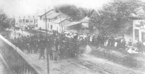 The exciting basketball games of the High School and the city "Tigers" that were played in our "cracker-box" hall. This hall was replaced in 1947 with the present structure.