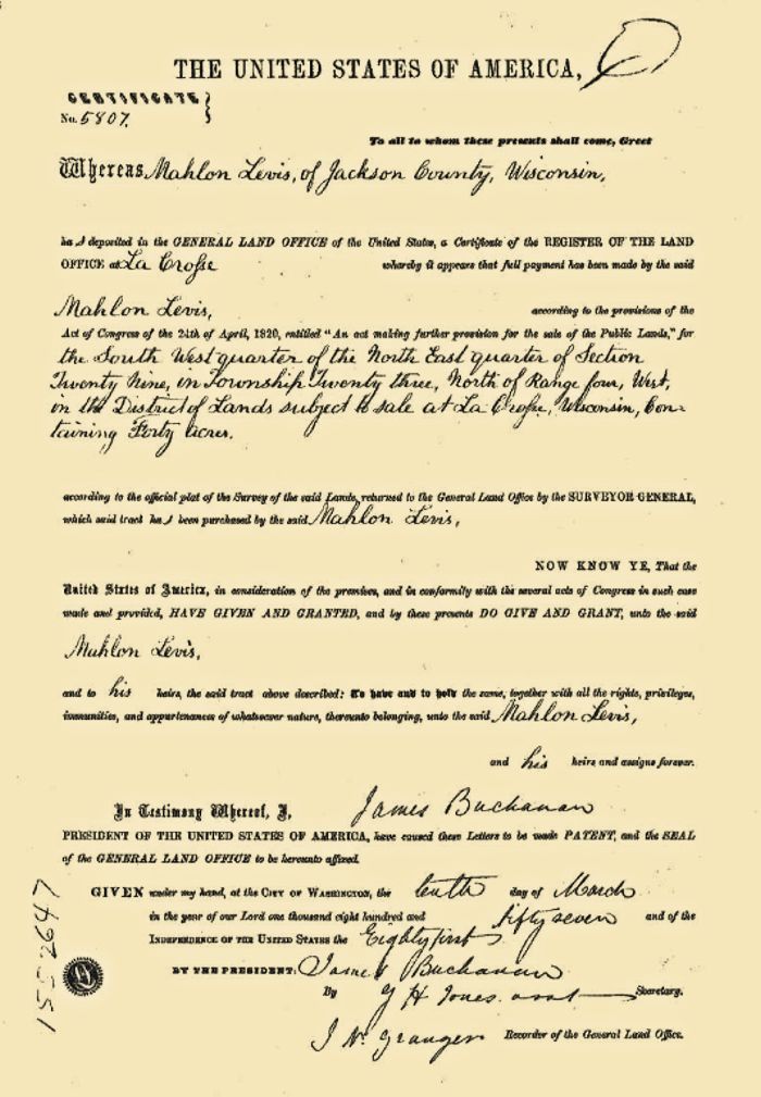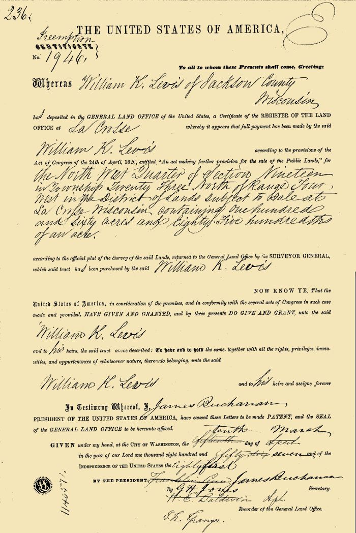 [1860 Jackson Co., WI Census] [Land Record 1] [Land Record 2] [Land Record 3]