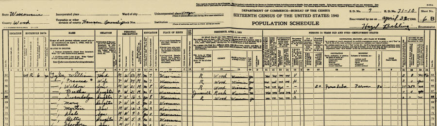 Theodore Tyler Male 1 Single White Son Wisconsin 1939
