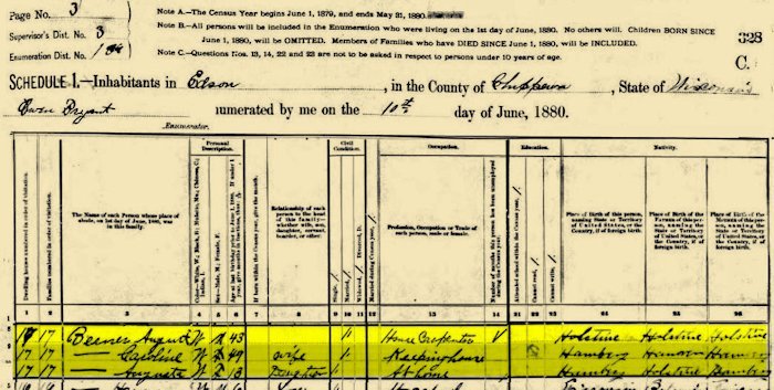 1880 Federal Census Edson, Chippewa, Wisconsin