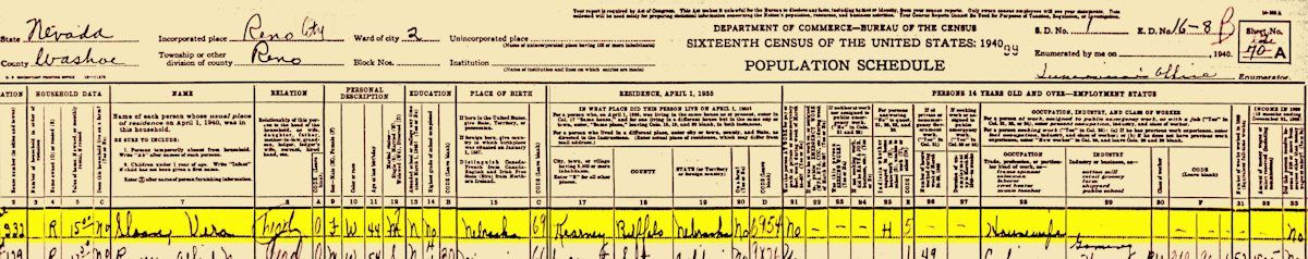Vera Sloan, 44 yr. (1896 in Nebraska) old female white married American resident since 1935