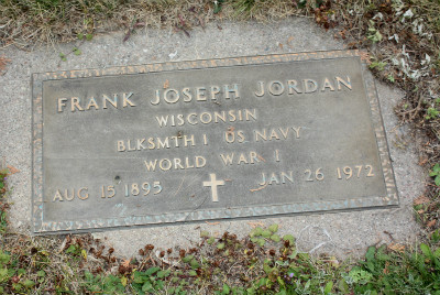 tf | Jordan, Frank Joseph; #2 | 15 Aug 1895 | 26 Jan 1972 | WWI-Blksmth 1 US Navy | Cecelia | Joseph & Margaret (Demmer) Jordan | |