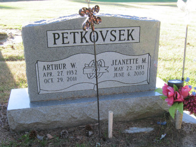 cto | Petkovsek, Arthur William | 06-G016-08 | 27-Apr-32 | 29-Oct-11 | Jeanette (Aumann) Bentzler | 16-Jun-49 | Tony & Dorothy (Anderson) Petkovsek | b. Minneapolis |