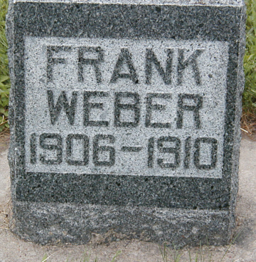 ctn | Weber, Frank | S1-R05-G38 | 19 Nov 1907 | 2 Oct 1911 | 1911 | Stone says B.1906;D.1910 | Single | Louie & Anna (Waseca) Weber | |