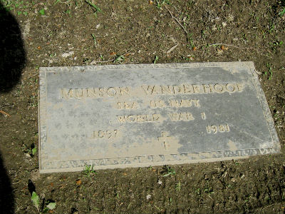 tok | Vanderhoof, Munson Sr.; #2 | 25-Jul-1897 | 11-Jan-1981 | WWI- U.S. Navy; b. town of Sherman, Clark Co., WI; D. King WI; d. Heart Problems | Florence Schroder | 21-Mar-1923 | Munson & Charlotte (Miller) Vanderhoof |