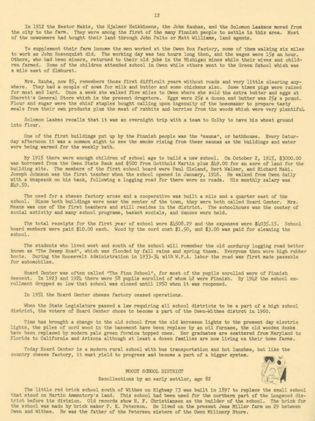part of the Owen—Withee district in 1960. Time has brought a change in the old