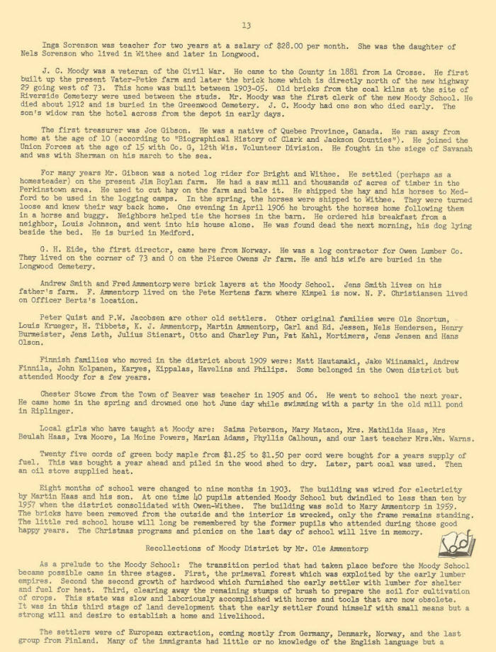 Local girls who have taught at Moody are: Saima Peterson, Mary Matson, Mrs.