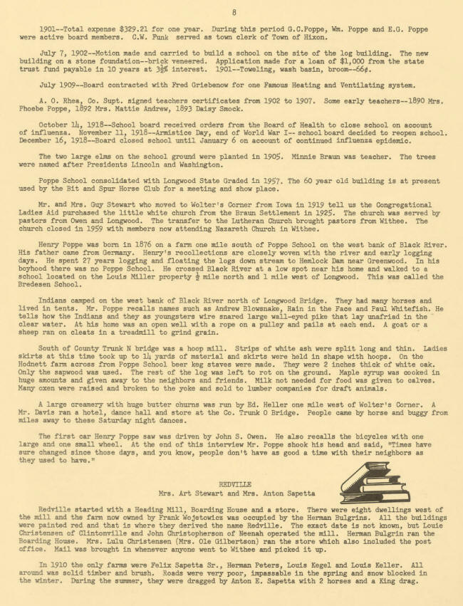 were active board members. C.W. Funk served as town clerk of Town of Hixon.