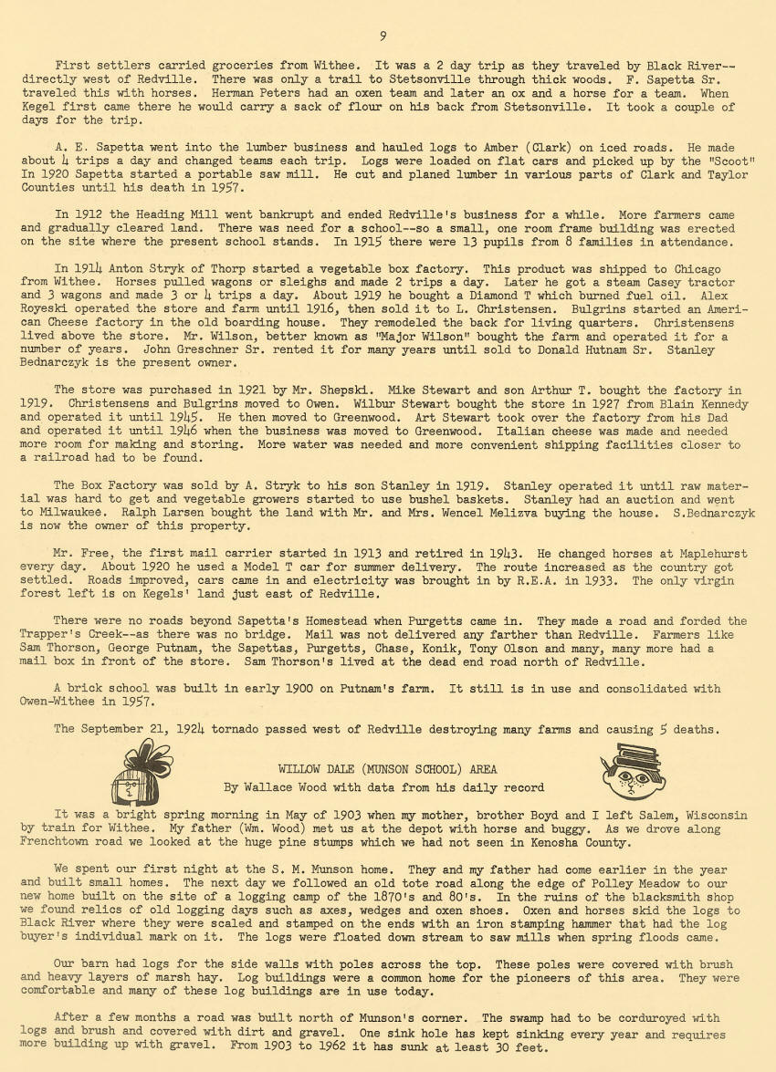 shipped to Chicago from Withee. Horses pulled wagons or sleighs and made 2 trips