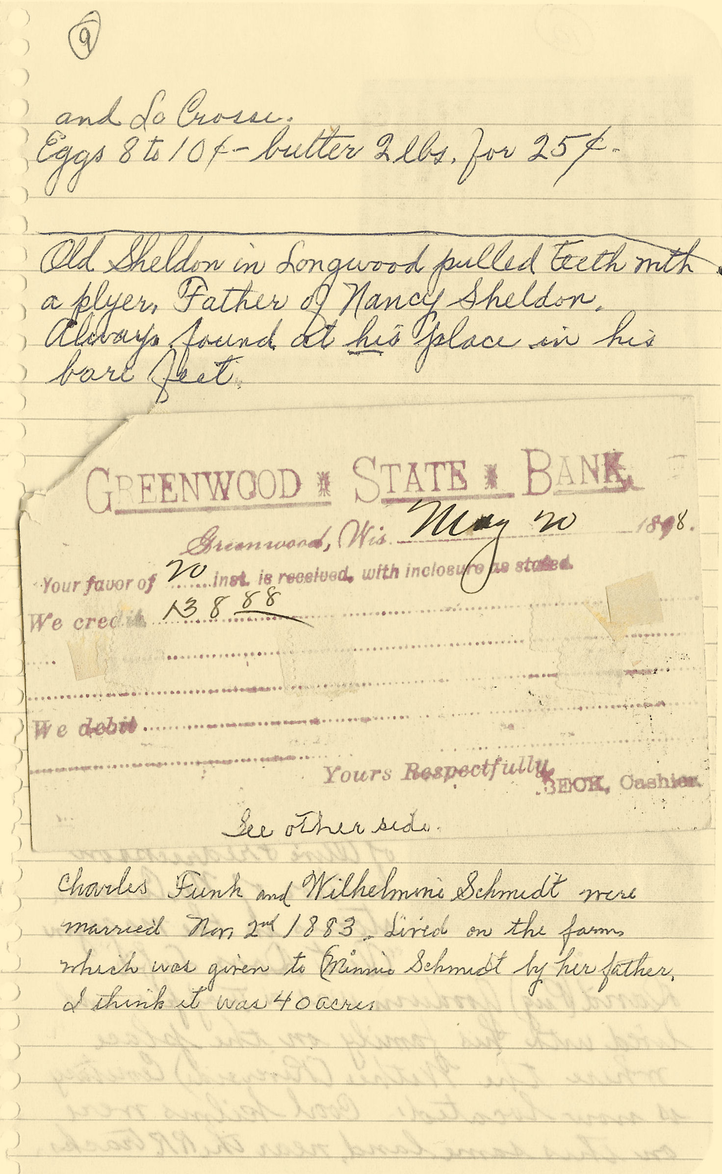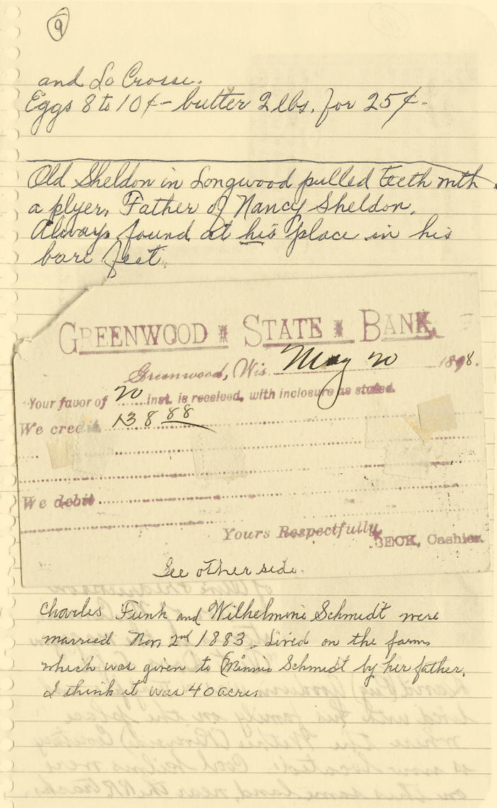 Charles Funk and Wilhelmina Schmidt were married November 2, 1883. Lived on the farm which was given to (Minnie) Schmidt by her father. I think it was 40 acres.