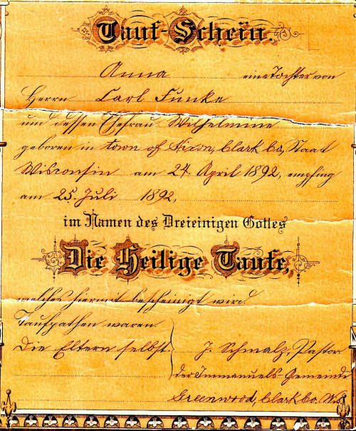 *** This copyrighted Clark Co., Wis. genealogy and history material is used by permission of the submitters. Contact us if anyone is using this data inappropriately. It may not be copied and posted to any commercial/.com genealogy sites such as Genealogy Trails, Family Tree Maker or the merged companies Ancestry.Com/RootsWeb/MyFamily or sold for profit.