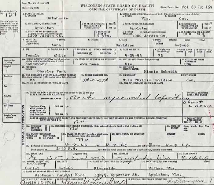 Bertha Funk, the wife of Otto Funk.  Otto is a brother to my great grandfather, Charles Funk.