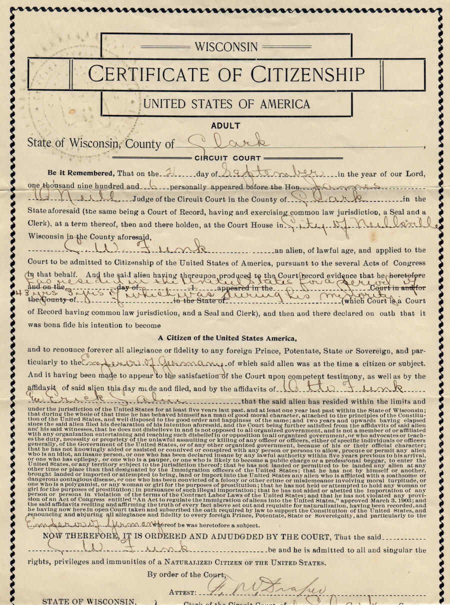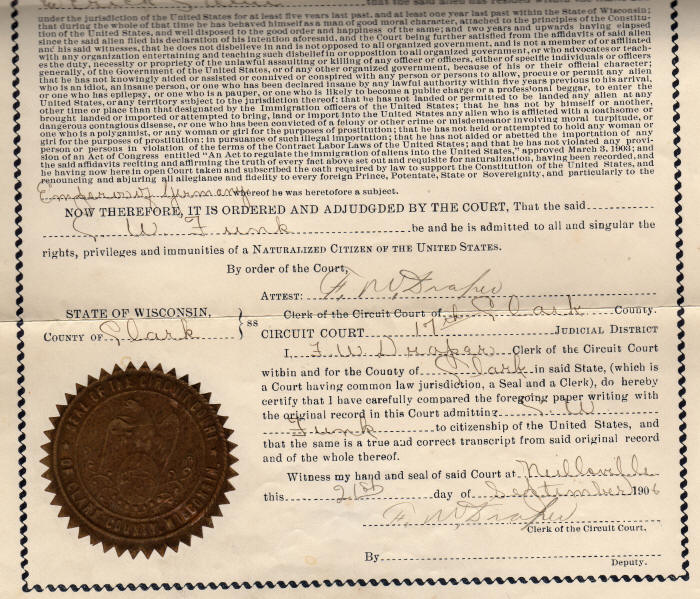 **This Clark Co., WI Internet Library, ALHN & AHGP website is dedicated to the free sharing of information by researchers, local historians, genealogists and educators.  Because of our non-profit status, submissions are not to be used for profiteering of any kind.   Our representatives cannot accept gratuities beyond the basic expenses (i.e. postage, copying, courthouse or rental fees) for obtaining requested information.  We reserve the right to ban the involvement of anyone who intentionally disregards these policies.   Please show your appreciation for this database by Becoming a Clark County History Buff or making a contribution to our Support Fund and Perpetual Preservation Account to help keep this Clark Co., WI database freely available on the World Wide Web and free from commercial enterprise.
