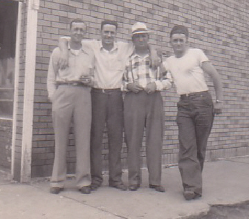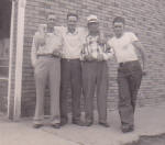 The second from the left, with his arms around the other two,  Russel Everd Poppe (My Dad).