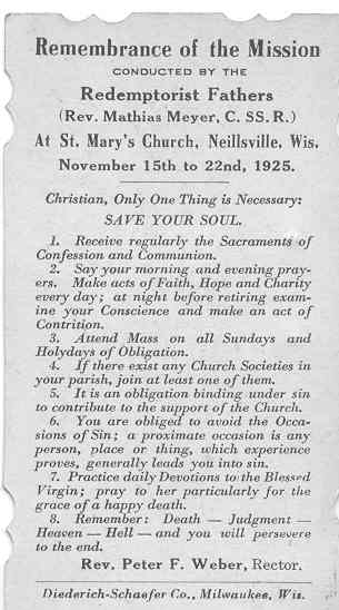 Weeklong parish missions have a long tradition at St. Mary’s. Fr. Weber conducted the earliest mission on record in 1925.