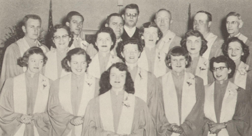 In 1953 the beautiful new gowns of gray material were purchased for the Senior Choir and the Men’s Chorus.
