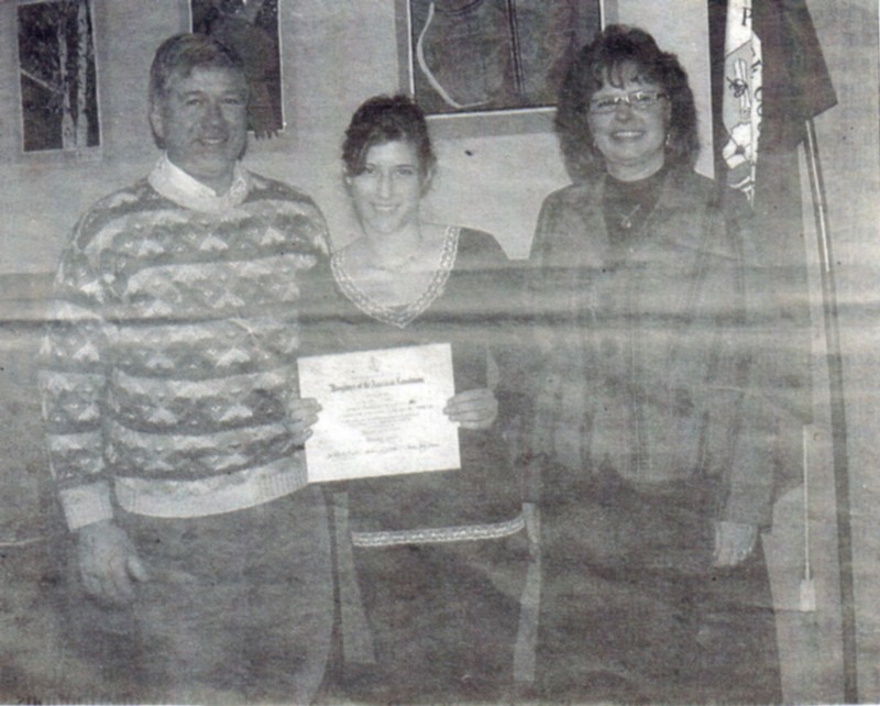 DAR Good Citizens Chairman Shannon Moore (right) poses next to DAR Good Citizen Award winner Kaitlyn Kuhn (center) of Neillsville, standing next to her father, Richard Kuhn (Left). The Nay-osh-ing Chapter, Plover, Daughters of the American Revolution presents the award yearly. (Contributed photo)