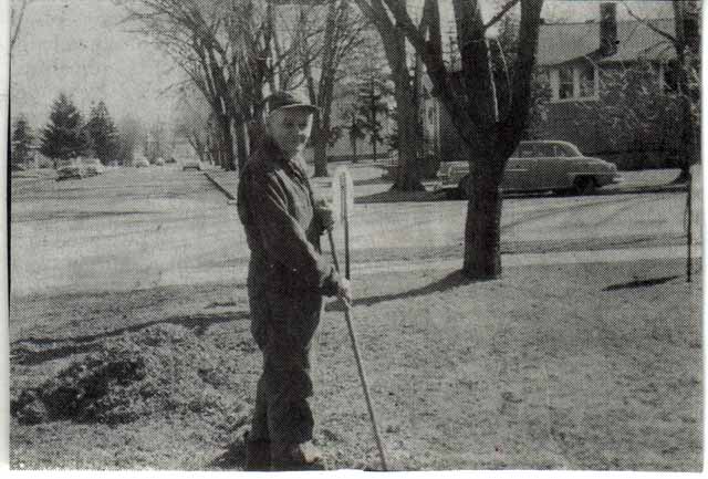 This week, we have a picture of a man dressed in fall attire raking his lawn.  You might expect this photo to have been taken a few years ago, except for the style of car in the background.  Does anyone know who this man is, and where and when the picture was taken?  Let us know, and we will pass any information on to our readers.