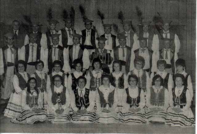 This week, we have a group photo of some colorfully dressed men and women.  One man in the center even holds a concertina!  Do you know who these people are, and what special occasion they may be gathered for?  Do you know when and where this photo may have been taken?