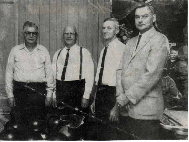 This week, we have four men in varying degrees of age and dress.  It seems that there are some black spheres much like bowling balls in the bottom left corner, perhaps suggesting that this was a bowling team. Do you know who these people are?  Do you know when or where this photo was taken?