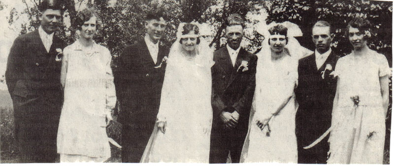 Who are these handsome couples, and when did this marriage take place? Was it truly a double wedding as it appears? Who else comprised the wedding party, and where did the ceremony take place? Area any of these people your relatives, and what happened in their lives after this ceremonial afternoon?
