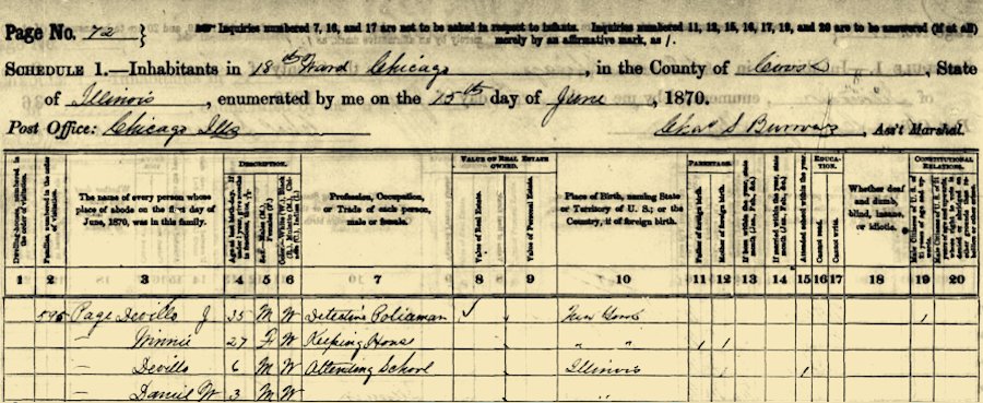 1870 Census, Cook, Illinois, United States, Chicago, ward 18, Cook, Illinois, United States