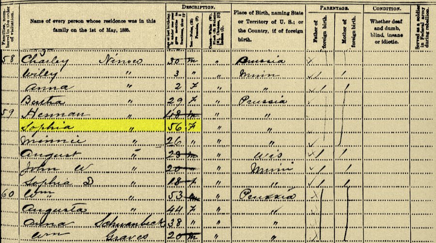 2nd Census for Herman & Sophia by John Prichert 1 Augl 1870