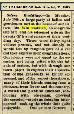 ....Sources: North Iowa times. (McGregor, Iowa), 1868-10-07; The St. Cloud journal, October 15, 1868; Family Records; Rochester, MN Post, 27 Jun 1868, Minneapolis daily tribune. Pub. Date Jun 21, 1868, The record and union. Pub. Date August 20, 1875, Rochester, MN