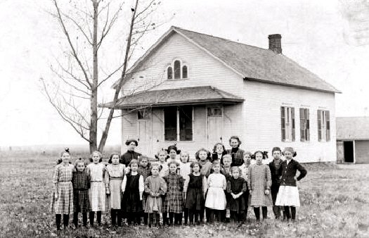Unfortunately, I know nothing of this picture. It was printed on a postcard and, I assume, mailed; however, I see no date or postmark. The handwritten message on the reverse refers to the "Farber girls" being marked with an "X" on the front, and Lillian and Lottie (Lottie is the author) are marked with a "." Lottie also mentions "Hoganson's store", teacher "Miss Elsie Snyder", and "Miss Alden's Pilgrim Party."