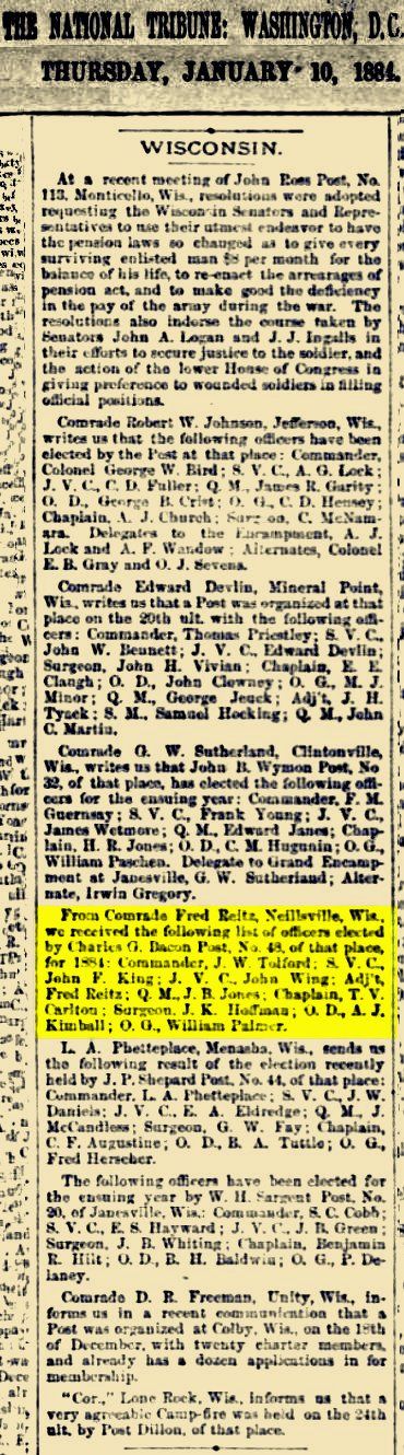 elected by Charles G. Bacon Post, No. 48, of that place for 1884: