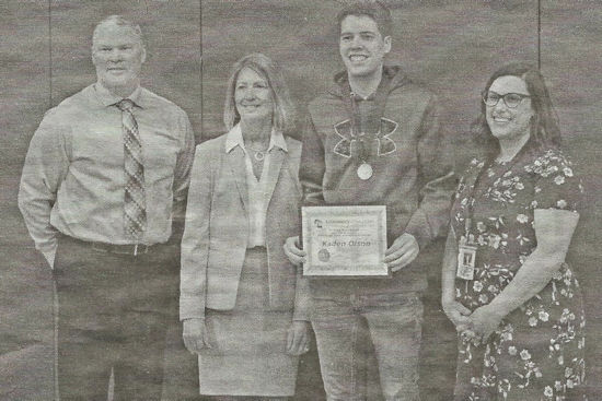 Loyal High School senior Kaden Olson proudly displays the certificate that was