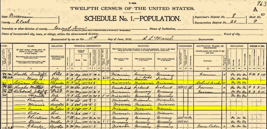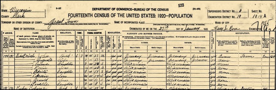 in Sec. 15, Grant Township, near Granton, WI. 1920 Federal Census,