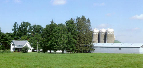 Home with farm buildings to the right,. August, 2012