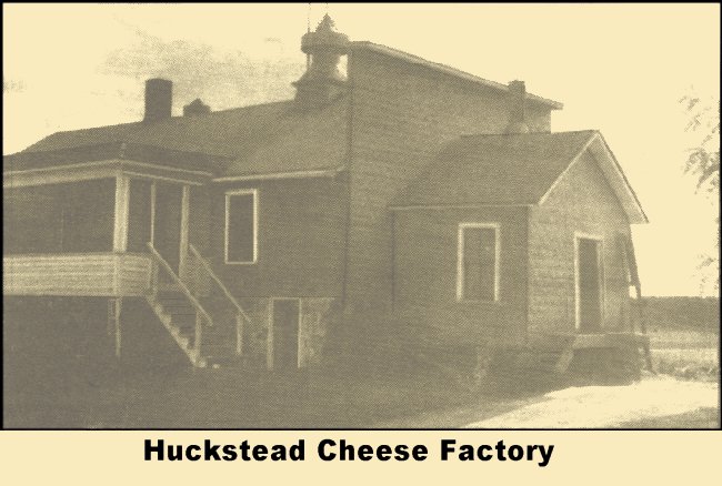 The Harold Huckstead cheese factory (pictured below) is believed to have been south of the Reed School, on Cardinal Avenue, one or two miles south of the highway 10 intersection. Huckstead's farm was also near that intersection, west, their house was on the north side of the highway, a barn and outbuildings on the south side. |