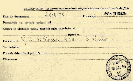 Immigration Card for William Campbell