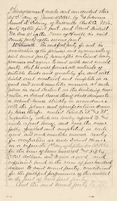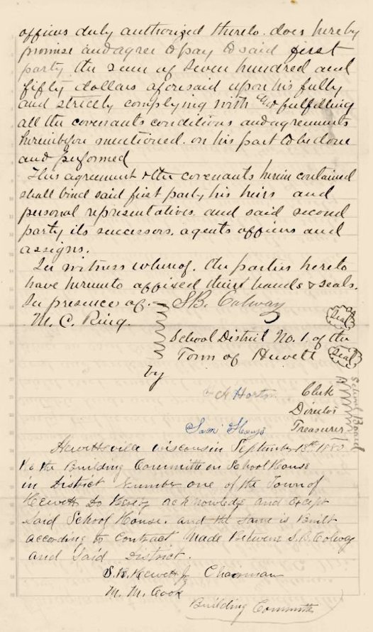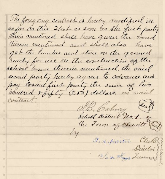 School: Hewett Township School Building Contract (18 Sep 1880)