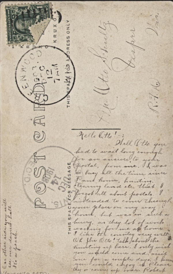 Addressed To: Mrs. Otto Schultz. Vesper, RFD, Wis.