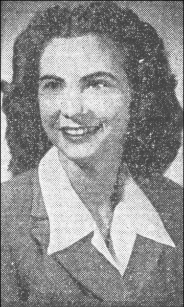 Mrs. F. Thomas Cruse of Van Nuys, Calif., sister of the bride-groom, was the matron of honor. Her bustle-backed gown of white Celanese was worn over a crinoline skirt. Her floral headdress matcher her bouquet of red roses and rosebuds