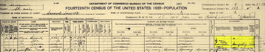 1920 Federal Census, Somerset, St. Croix, ED 192, Household ID 76, Line 19, Sheet A, #5