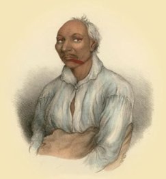 Shounk-Chunk the Black Wolf, Chief of the Winnebago (Ho-Chunk) Tribe. Hand-colored Lithograph from the Aboriginal Portfolio, painted at the Treaty of Green Bay (18 Aug 1827). |