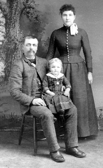 John Botey Kaudy was born Jan. 10, 1861 in Neosho, Wisconsin to Mathias and Mary (Botey) Kaudy. He moved with his parents to Colby, Clark County, Wisconsin in 1882 where his father owned and operated a fanning mill factory. March 24, 1886 he was united in marriage with Luella, the daughter of Theodore and Maryetta (Ransom) Brown in the village of Loyal. She was a native of Wrightstown, Wisconsin and was born June 15, 1868. There were three children born to this union: Edna Alice (Sischo) of Rapid River, Michigan, Lewis M. of Weston, Wisconsin and Ione Marie.