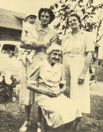 Pictured below are four generations of this family: Sadie Rowe, daughter Verla Hales, Hazel Miller, and child.