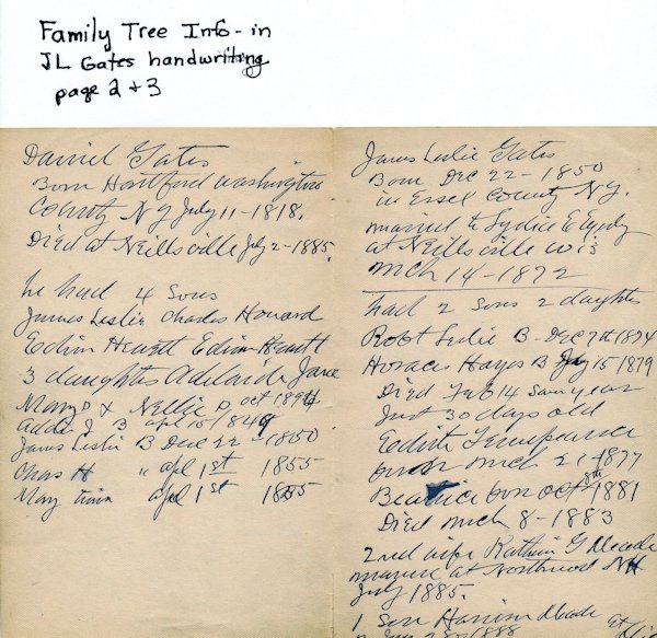 Gates Family Tree in the handwriting of James L. Gates; [Page 1] [Page 2-3] [Page 4]