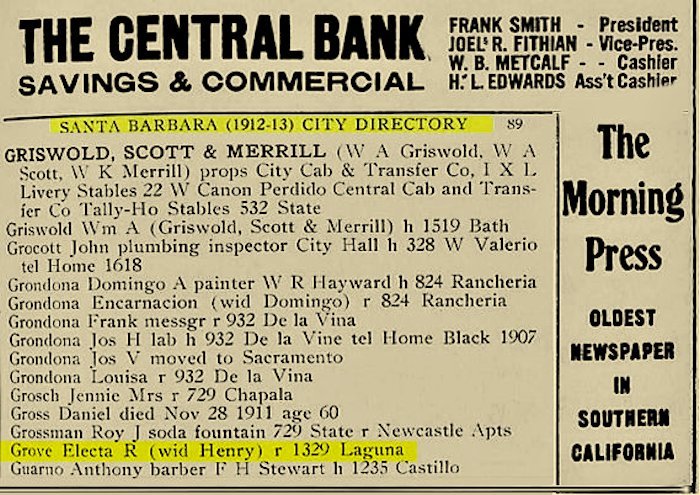 Bio: Tompkins, Electra Rachel (17 Augl 1822, NY--14 Jul 1913 in Santa Barbara, Santa Barbara, CA