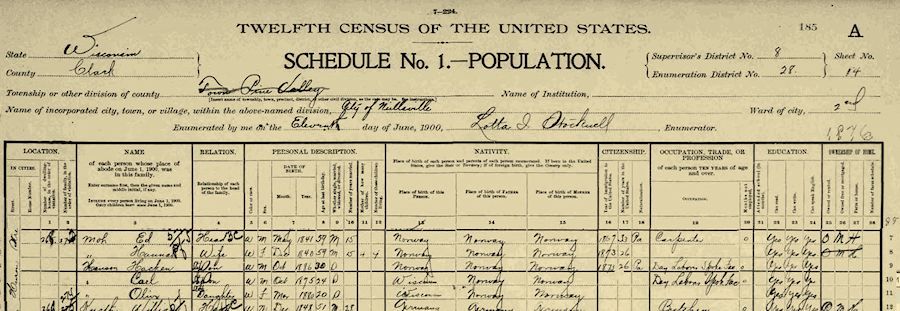 1900 Federal Census, Wisconsin Clark ED 28 Neillsville city Ward 1-3
