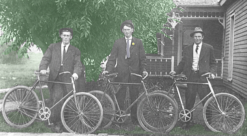 The picture above was taken when three good friends in Curtiss, WI posed with their new bikes. Ervin Koerner is on the left. Otto S. Olson (b. 27 May 1889, the son of Arne & Ellen Olson) is in the middle, and William Jakel is on his right.