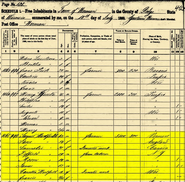 Samuel Hartford, White 51 yr. old male, farmer, b. VT