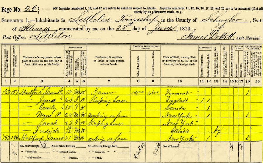 1870 Federal Census, Illinois, Schuyler, Littleton, Dwelling 192
