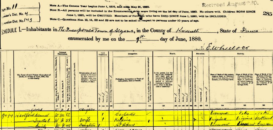 Inferred Children: John Hartford; Mary Jane Hartford; Emily Hartford; Samuel